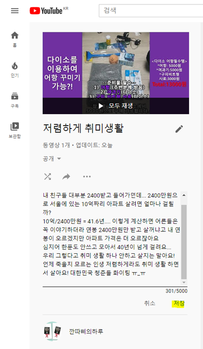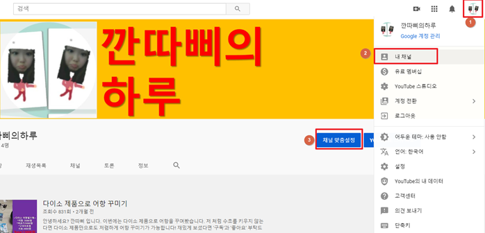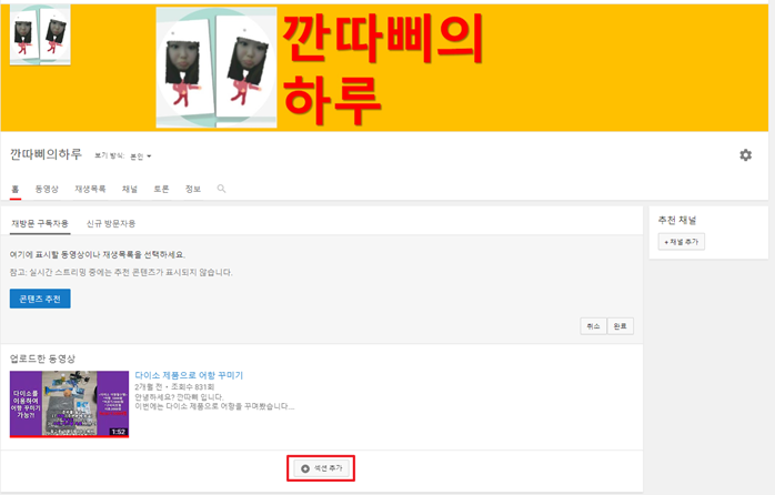 채널 레이아웃 변경하기(난 패스 하겠음 궁금하신 분들은 왕초보 유튜브 부업왕 p.273 참고)