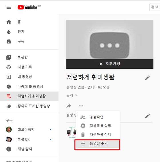 비슷한 분야의 영상들을 묶어서 재생목록을 만드는 방법을 알아야 합니다.