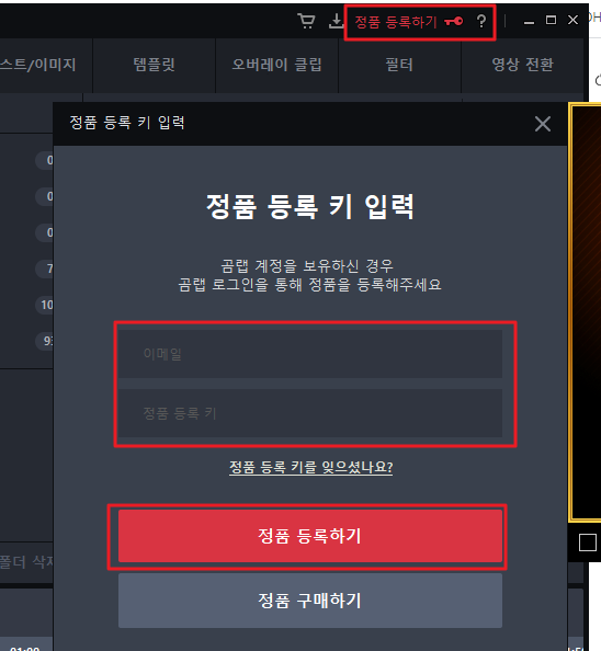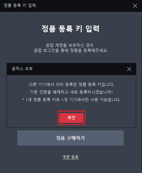 그후 다시 정품등록을 해줍니다.