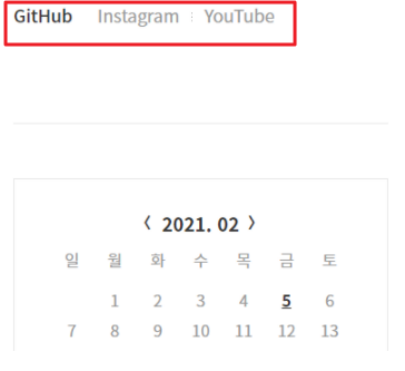 인스타그램, 유튜브, 깃허브 추가