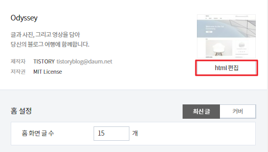 관리자 페이지 -> 스킨 편집 -> html 편집