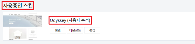블로그에 인스타그램, 유튜브등을 추가하고 싶으시다면, 스킨을 선택 할 때 Facebook과 같은 SNS 아이콘이 미리 만들어져 있는 스킨을 선택 하시는 것이 중요합니다. 저는 그래서 Odyssey 스킨을 선택 했습니다.
