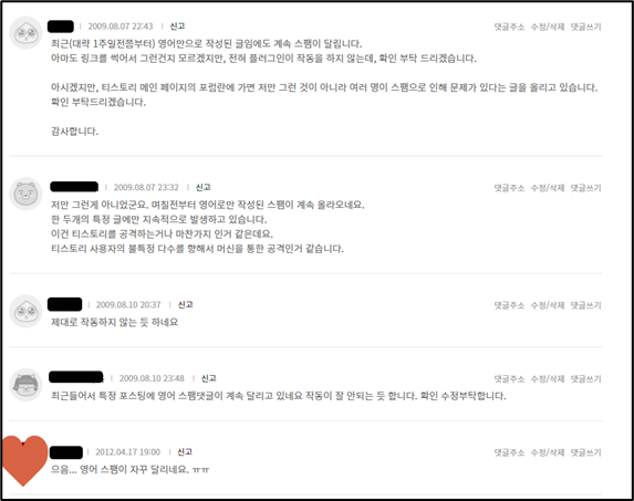 |영어 댓글/방명록 스팸 방지|