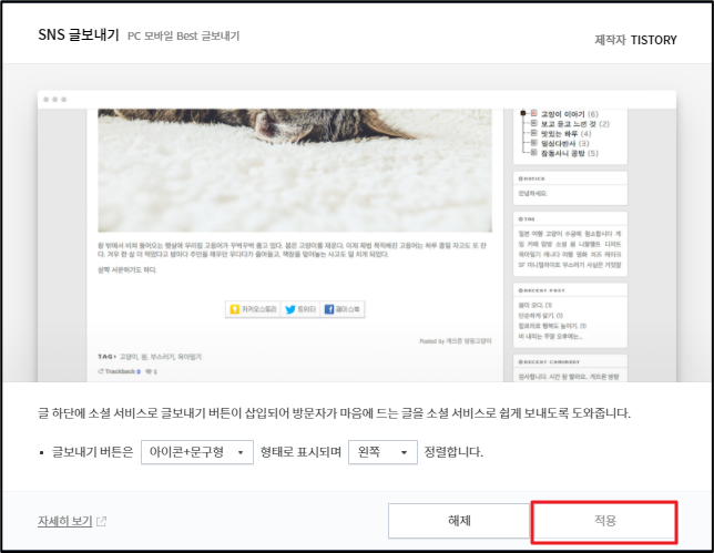 글 하단에 소셜 서비스로 글 보내기 버튼이 삽입되어 방문자가 마음에 드는 글을 소셜 서비스로 쉽게 보낼 수 있게 됩니다. 제 글이 유익했다면 많이 공유 해주세요 ㅎㅎ
