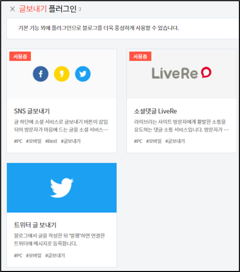 다시 관리자 페이지 -> 플러그인 -> 소설댓글 LiveRe 클릭-> 코드 입력 -> 적용 선택
