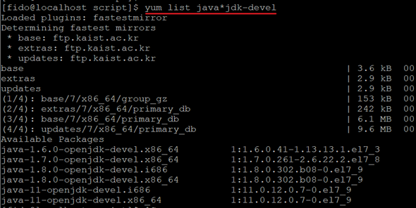 [fido@localhost script]$ yum install -y java-1.8.0-openjdk-devel.x86_64