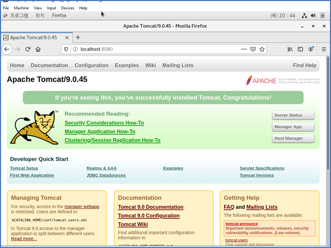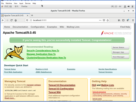1. apache-tomcat-9.0.45.tar.gz 파일이 위치 되어있어야 한다.