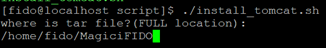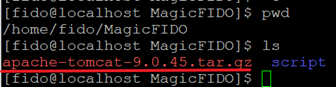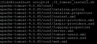 | [fido@localhost script]$ ./install_tomcat.sh where is tar file?(FULL location): /home/fido/MagicFIDO apache-tomcat-9.0.45/conf/ apache-tomcat-9.0.45/conf/catalina.policy apache-tomcat-9.0.45/conf/catalina.properties apache-tomcat-9.0.45/conf/context.xml apache-tomcat-9.0.45/conf/jaspic-providers.xml apache-tomcat-9.0.45/conf/jaspic-providers.xsd apache-tomcat-9.0.45/conf/logging.properties apache-tomcat-9.0.45/conf/server.xml |