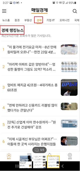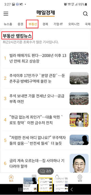 경제와 부동산 관련된 다양한 기사를 읽어보라고 해서 "매일경제"앱을 다운받았다.