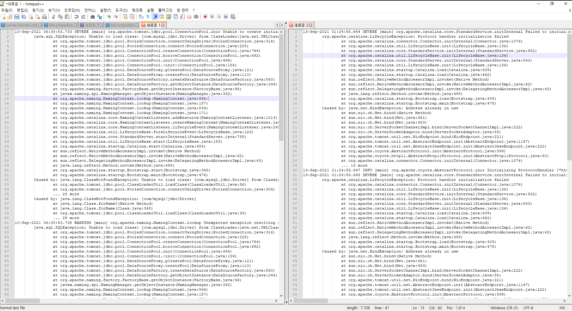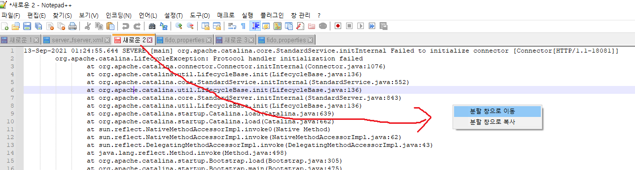 notepad++의 장점중에 하나가 분할창으로 열어 파일을 비교하기 쉽습니다.