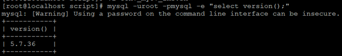 [root@localhost script]# mysql -uroot -pmysql -e "select version();"