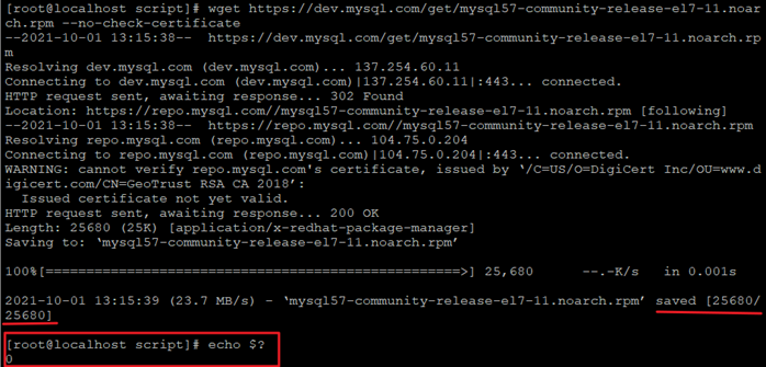 wget https://dev.mysql.com/get/mysql57-community-release-el7-11.noarch.rpm --no-check-certificate