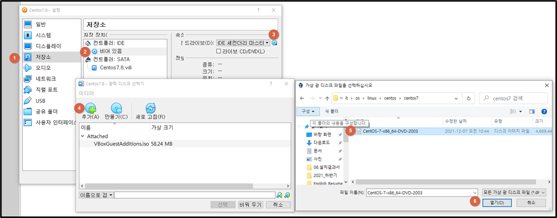 2) 가상머신에 ISO 파일 올려서 실행하기