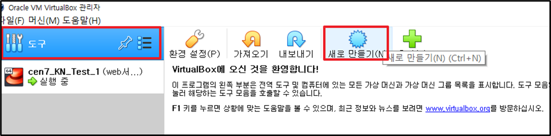 도구 -> 새로 만들기 -> 이름(ex:CentOS7.8) ->