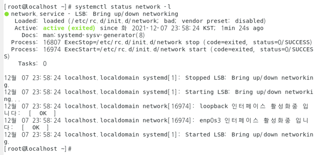 network status network -l 과 같이 입력하면 network 상태를 확인할 수 있어 편리하다. (물론 CentOS7 기준)