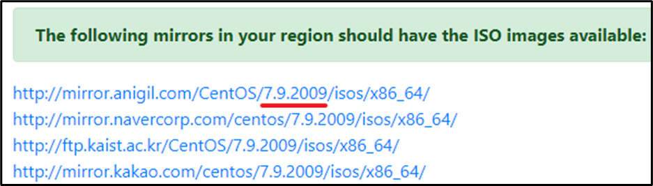 2021년12월9일 기준 CentOS7의 가장 최신 버전은 Centos7.9이다.