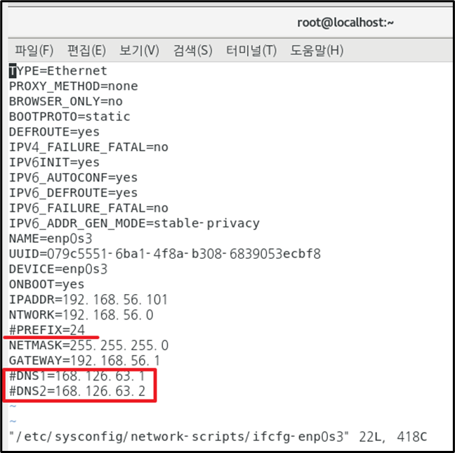 최종 vi /etc/sysconfig/network-script/ifcfg-enp0s3 설정