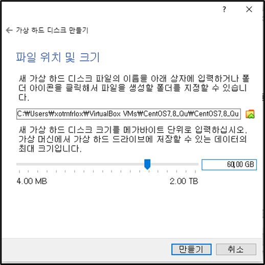 그렇기 때문에 메모리는 4086(느리면 답답하니까..) 디스크 용량은 60G로 잡았다.