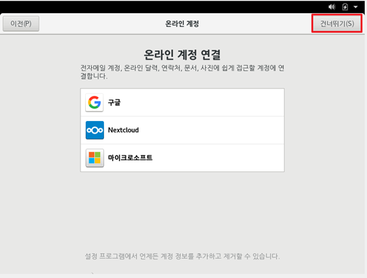 여기서 사용자 생성을 안하면 설치 완료 후에 사용자 생성을 하라고 재촉하기 때문에 여기서 그냥 사용자 생성을 해준다.