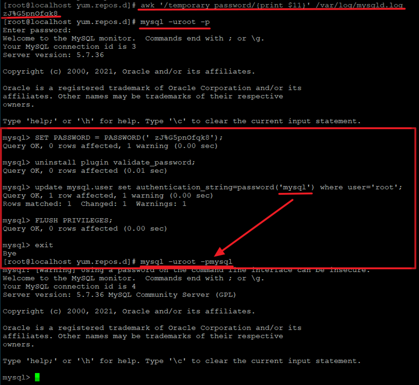awk '/temporary password/{print $11}' /var/log/mysqld.log