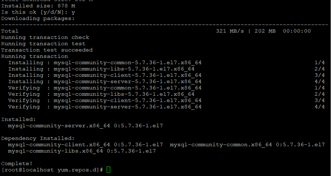 의존성 에러를 해결하다보면 아래와 같이 mysql-server가 최종 설치된다.