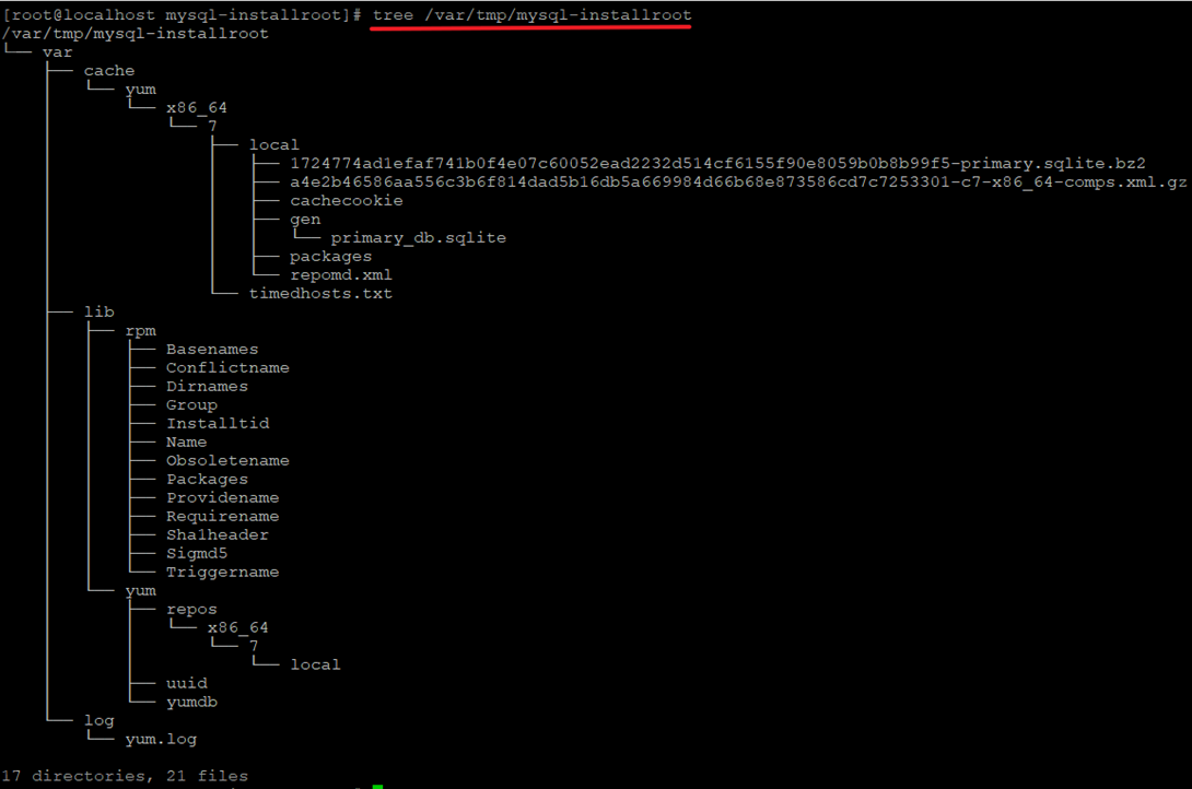 (참고) tree라는 명령어로 /var/tmp/mysql-installroot 디렉토리 구조를 살펴보면 아래와 같다.
