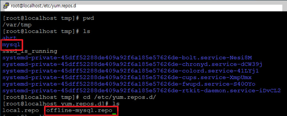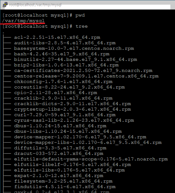 아래와 같이 mysql과 관련된 rpm들과 repodata가 저장된 것을 확인할 수 있다.