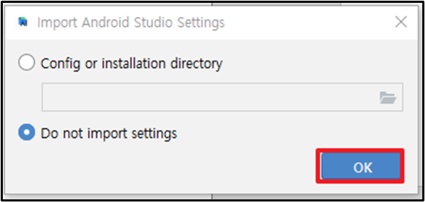 저는 기존 안드로이드 스튜디오 정보가 없기 때문에 Do not import setting을 선택했습니다.