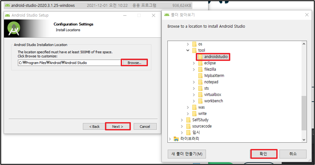 3. Andorid-studio 설치 공간 선택