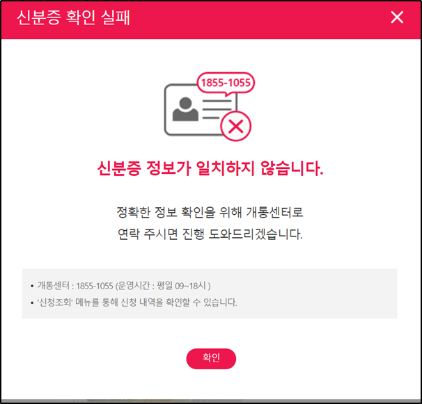 근데 저는 신분증 확인 실패라고 뜨네요 ^^;;; 왜그런거죠? 그래도 걱정할 것은 없습니다.