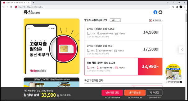 헬로 모바일 사이트 혹은 CU 편의점에서 USIM칩을 구매합니다.그 다음에는 헬로 모바일 센터로 전화를 하시면 됩니다.