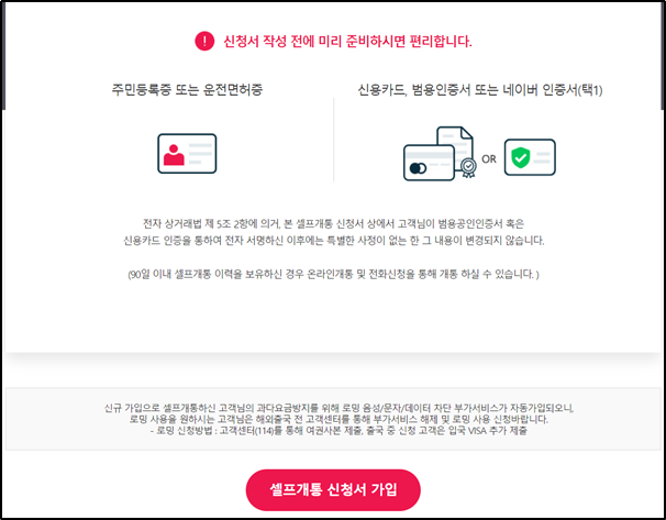 하지만 블로그에서는 셀프개통 신청 방법을 계속해서 작성하도록 하겠습니다.