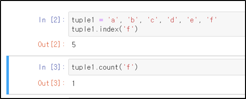 변경, 삭제 메서드는 사용할 수 없지만, index나 count등과 같이 요소를 변경하지 않는 메서드는 튜플에서 사용할 수 있습니다.