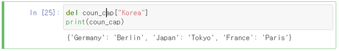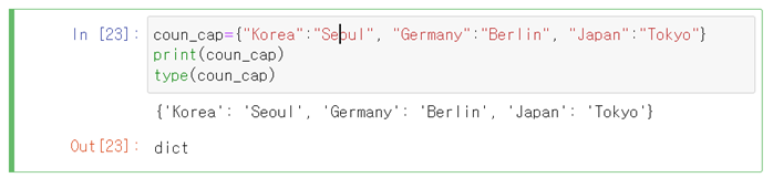coun_cap={"Korea":"Seoul", "Germany":"Berlin", "Japan":"Tokyo"}
