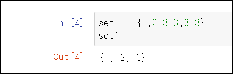 세트를 생성할 때는 중괄호{}로 감싸면 됩니다.
