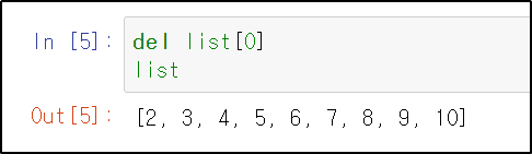입력값과 첫번째로 일치하는 항목을 리스트에서 제거 | list.remove(2) |
