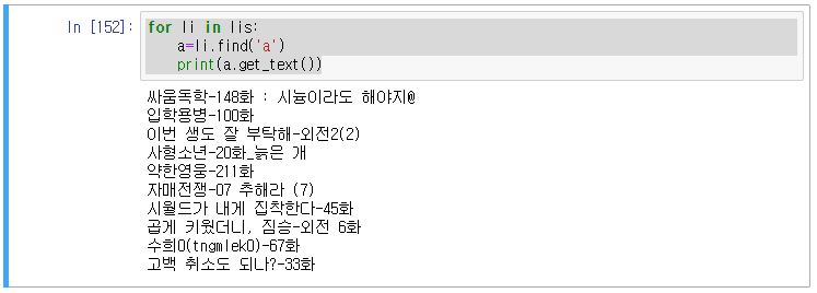 find_all은 문자를 가져오는 get_text()를 사용할 수 없기 때문에 for문을 사용한다.