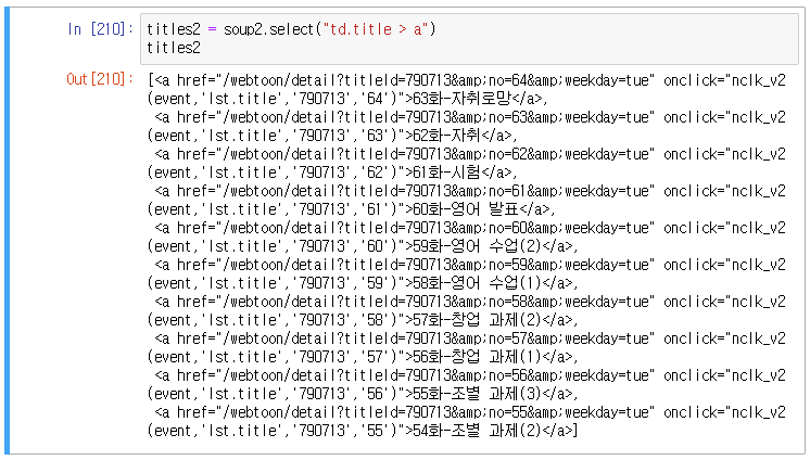 titles2에 있는 링크를 뽑아내기 위하여 'href'부분을 가져왔습니다.