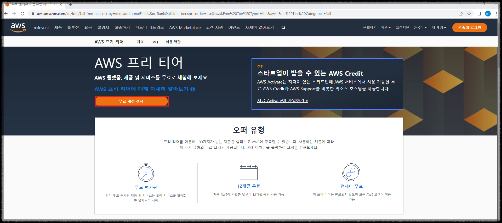 첫째날은 "AWS 계정생성"부터 시작하도록 하겠습니다.