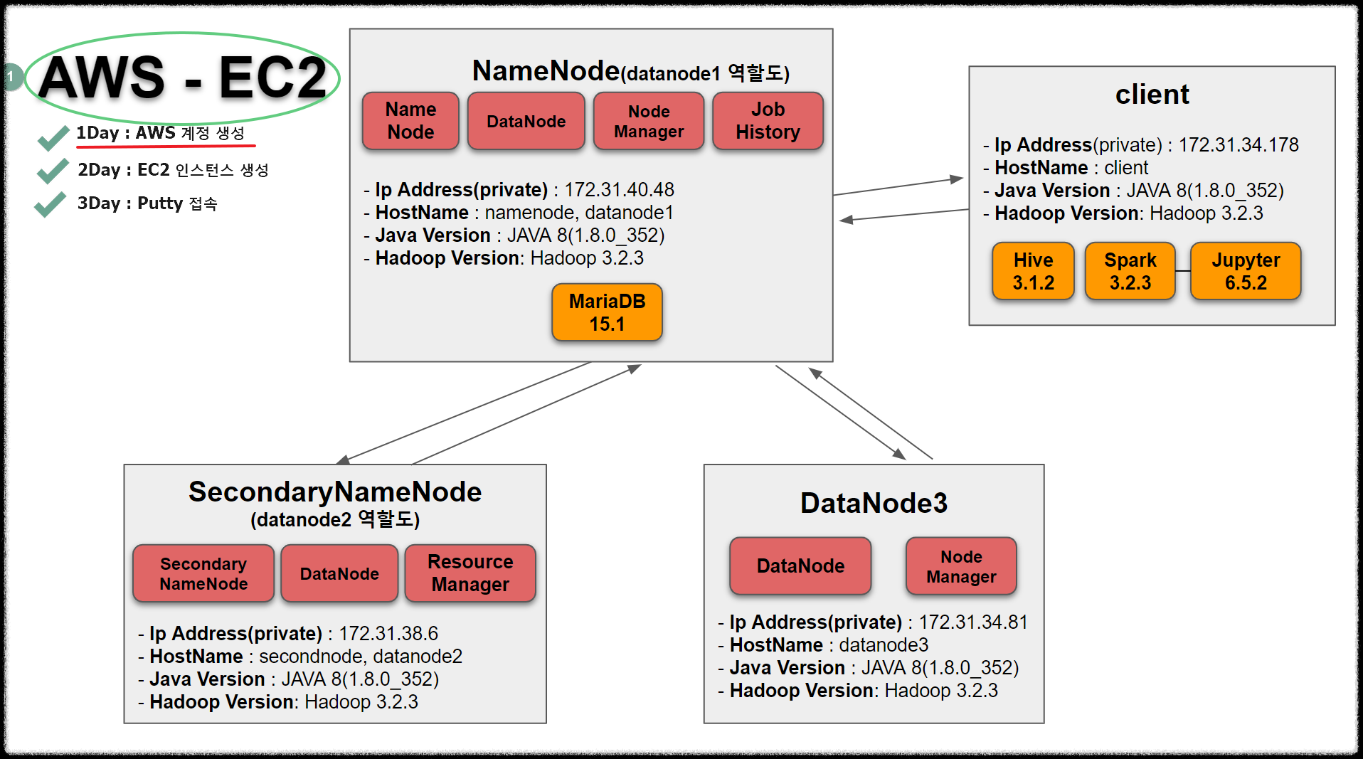 | [AWS-EC2 Hadoop|Hive|Spark] 인스턴스 putty 접속 + root 접속 + puttygen .ppk 생성 + (0) | 2022.12.04 |