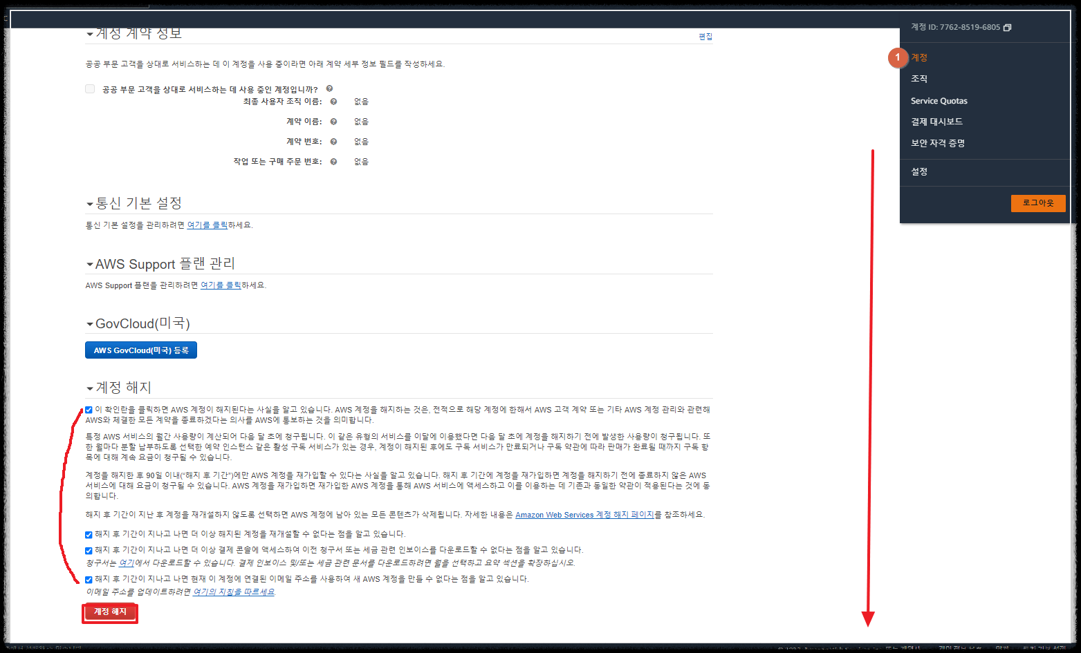 | AWS 계정 해지
