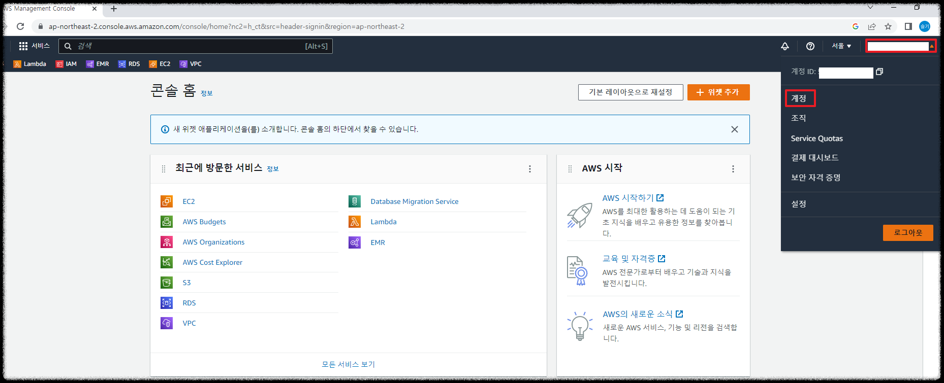 가입이 완료되었으면 AWS Management Console로 이동합니다.