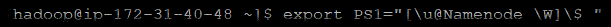 [hadoop@ip-172-31-40-48 ~]$ export PS1="[\u@Namenode \W]\$ "