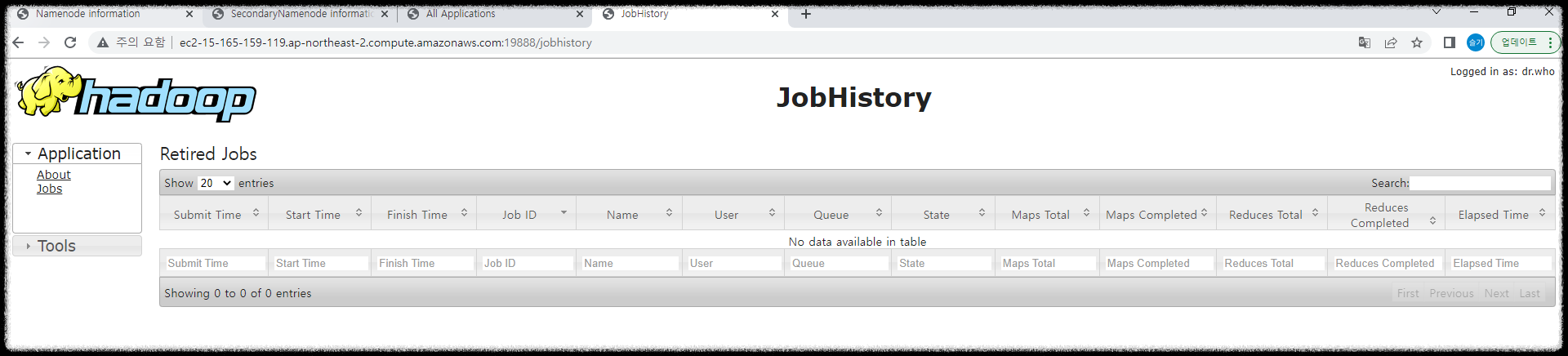 http://JobHistory Server 설치서버_publicDNSorIP:19888