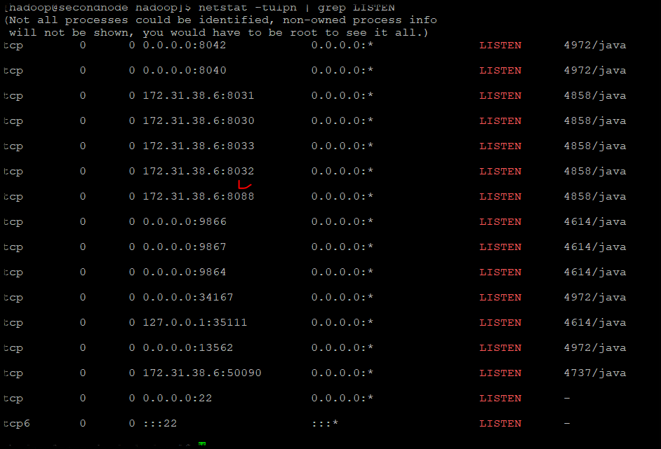 tcp 0 0 172.31.38.6:8088 0.0.0.0:* LISTEN 4858/java
