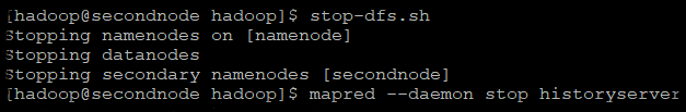 [hadoop@secondnode hadoop]$ stop-dfs.sh