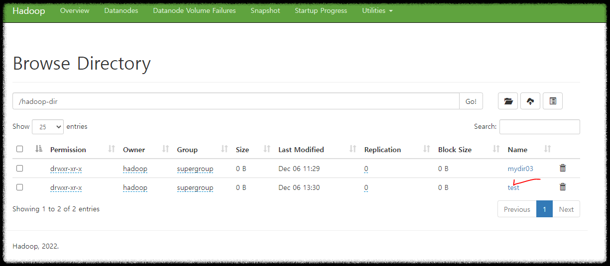 [hadoop@Namenode hadoop]$ hdfs dfs -mkdir -p /hadoop-dir/test