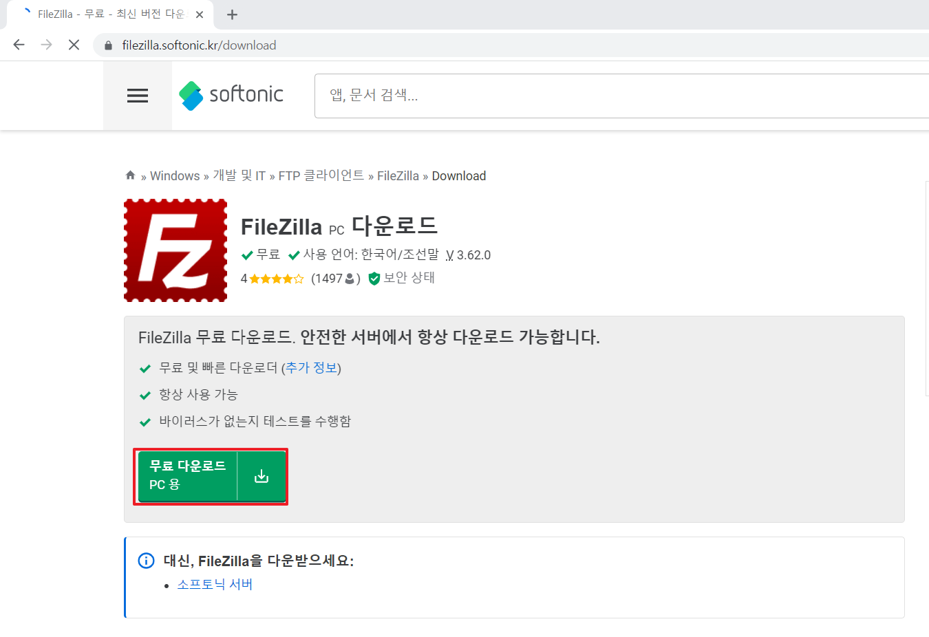 FileZiilla가 없으신분들은 아래 사이트에서 FileZilla를 먼저 다운로드 해주세요.