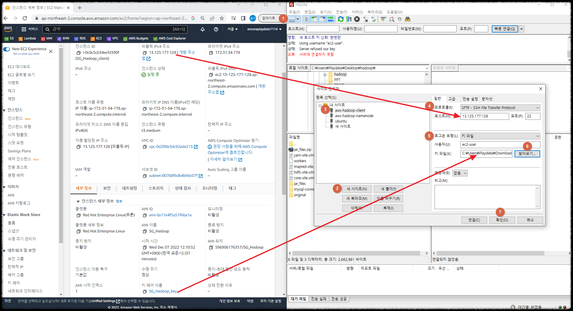 - 키 파일 : aws 접속시 키 파일 (AWS 인스턴스 페이지 참조)