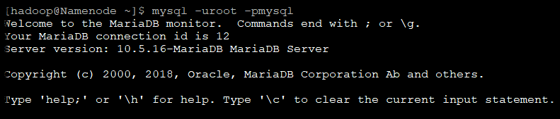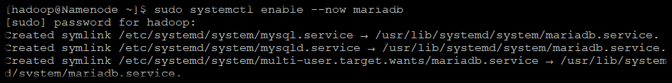 [hadoop@Namenode ~]$ sudo systemctl enable --now mariadb